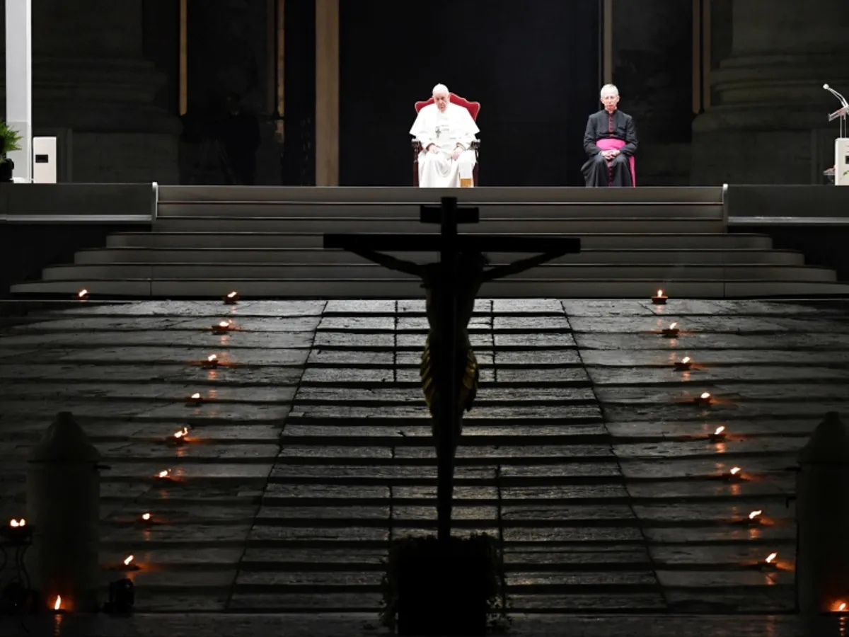 Imagini emoționante: Via Crucis, refăcută de Papa Francisc în piața goală a Bazilicii Sfântul Petru