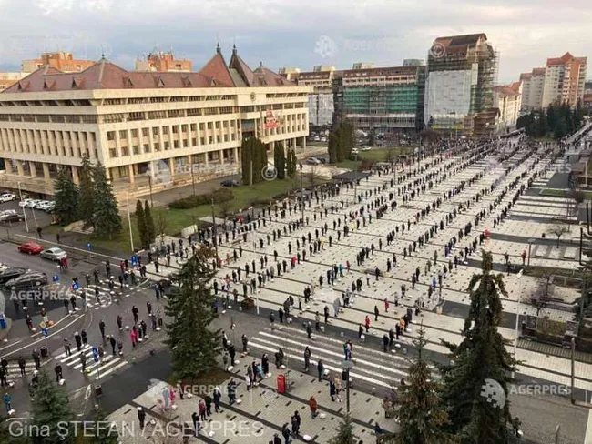 Dacă în alţi ani ceremonialul se desfăşura doar pe platoul din faţa Palatului Administrativ din Miercurea Ciuc, autorităţile au decis, în acest an, să extindă zona, pentru păstrarea distanţei fizice, scrie Agerpres.