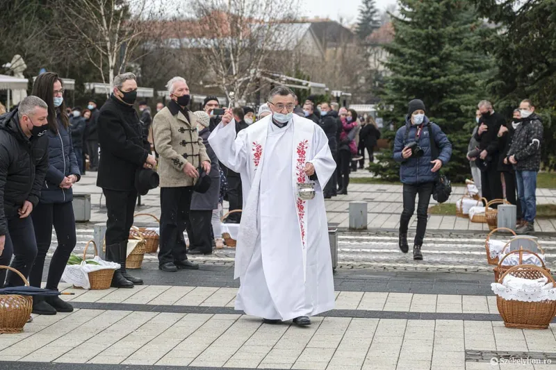 Un impresionant ceremonial de sfinţire a bucatelor cu ocazia Paştelui Catolic s-a desfăşurat duminică dimineaţă la Miercurea Ciuc, în condiții speciale. A fost blocată circulaţia pe două bulevarde din centrul oraşului.