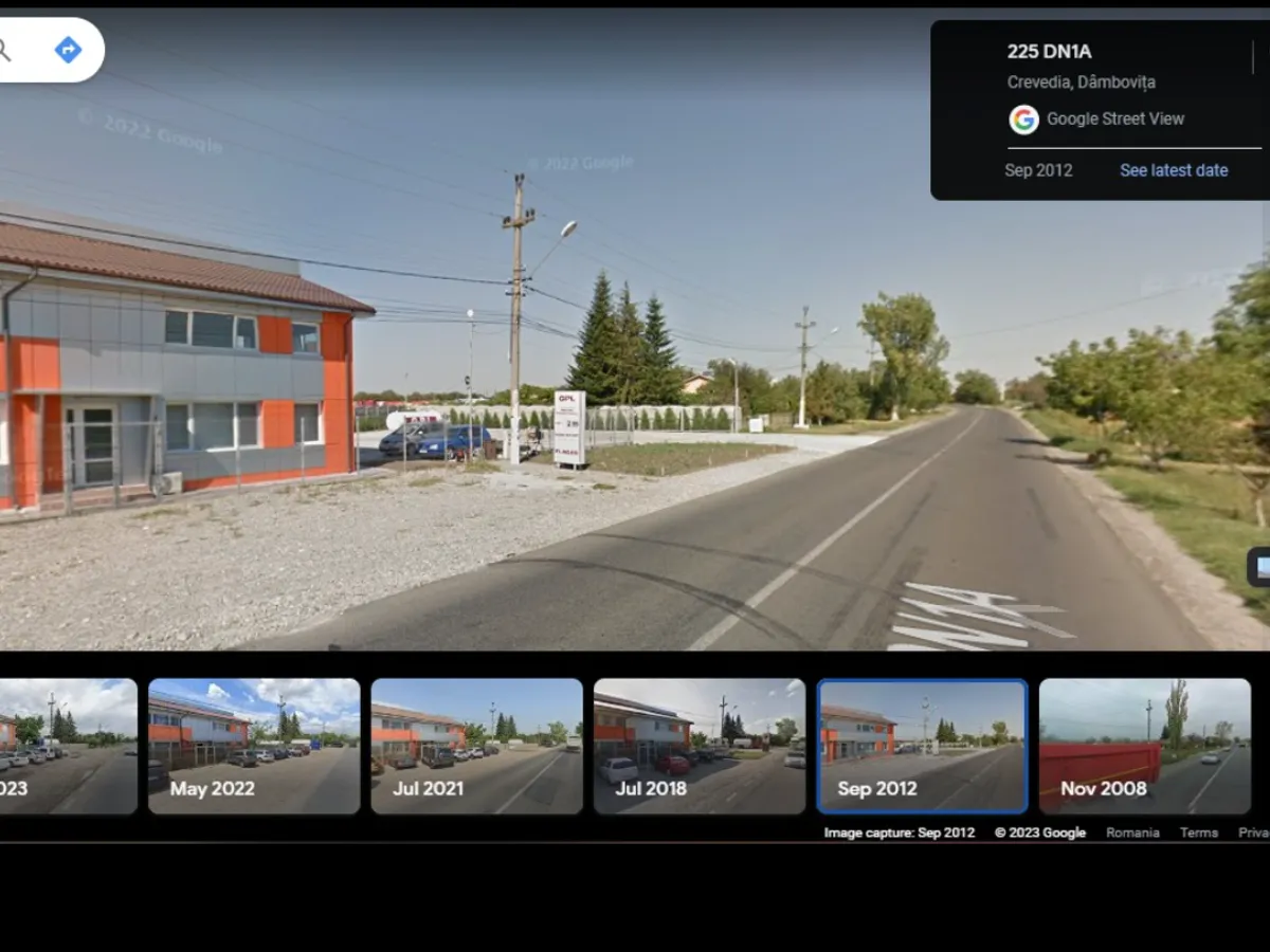 Imagini publicate de comunitatea „Crevedia Visează” cu ajutorul aplicației „Google Earth” arată evoluția stației GPL din 2012.