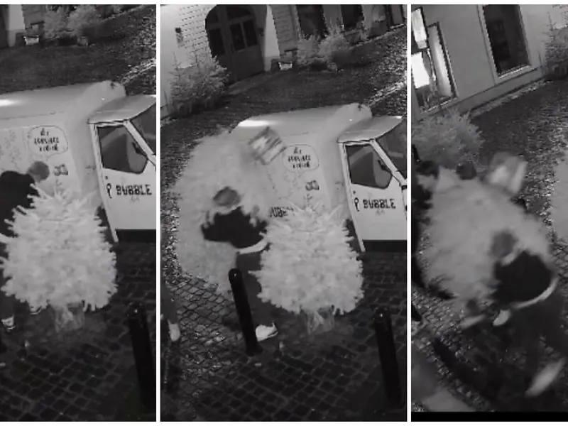 În Sibiu a fost furat un pom de Crăciun dintr-un cartier. Hoțul a fost prins pe camerele video