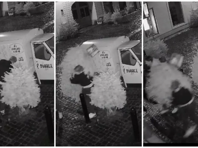 Din nefericire, unul dintre restaurante a avut parte de o „surpriză” neplăcută, surprinsă chiar de camerele de supraveghere: patru persoane au furat unul dintre brazii împodobiți și puți în fața intrării.