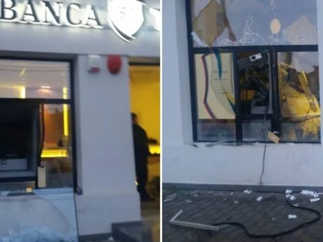 După modelul deja brevetat la Sinaia, azi au mai fost aruncate în aer două bancomate și jefuite, în Arad, la o sucursală a Băncii Transilvania de pe Calea Timișorii, și în localitatea timișeană Belinț, la bancomatul de la filiala CEC.