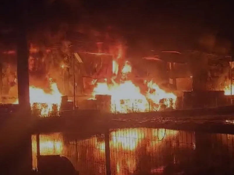 Incendiu de proporții la o hală cu deșeuri reciclabile. 8.000 mp, afectați. A fost transmis Ro-Alert