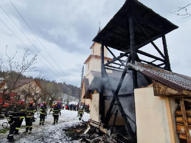 "La sosirea forţelor de intervenţie, incendiul se manifesta pe o suprafaţă de aproximativ 50 metri pătraţi din construcţia cu destinaţie casă mortuară şi la clopotniţă", a declarat purtătorul de cuvânt al ISU Bacău, Ema Tereş, potrivit Agerpres.