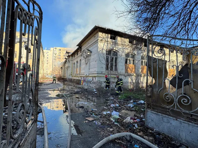 Incendiu la o fostă clădire a Liceului „Timpuri Noi”. 500 de metri pătrați sunt afectați