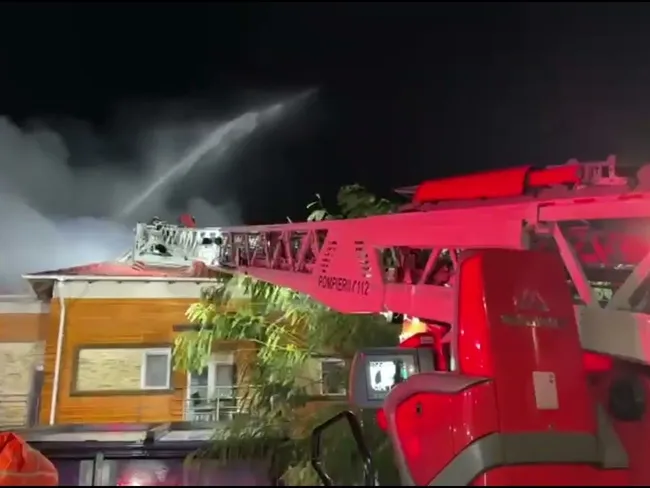 Panică într-o pensiune plină cu turiști din Mahmudia, în Delta Dunării. Acoperișul clădirii, care include și un restaurant, a fost cuprins de flăcări. Patruzeci și șase de persoane, printre care cinci copii, au reușit să iasă la timp din interior.