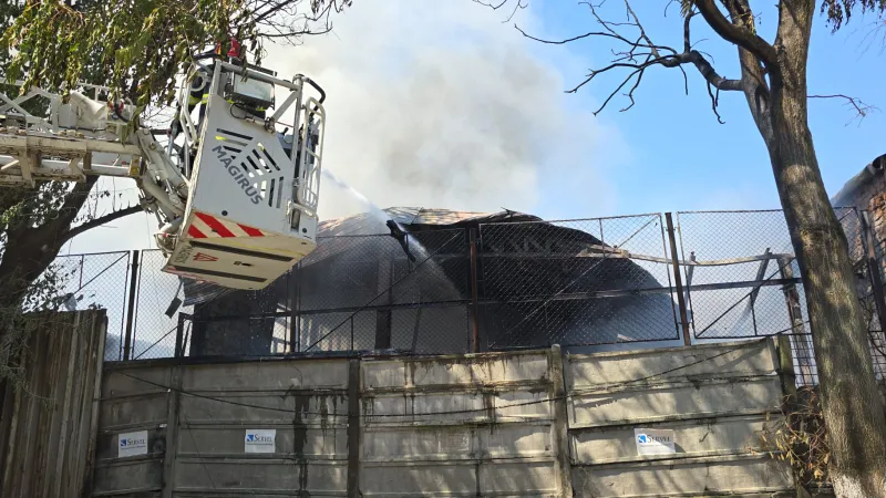 Incendiu masiv la un service auto din București. Mai multe mașini de pompieri sunt la fața locului