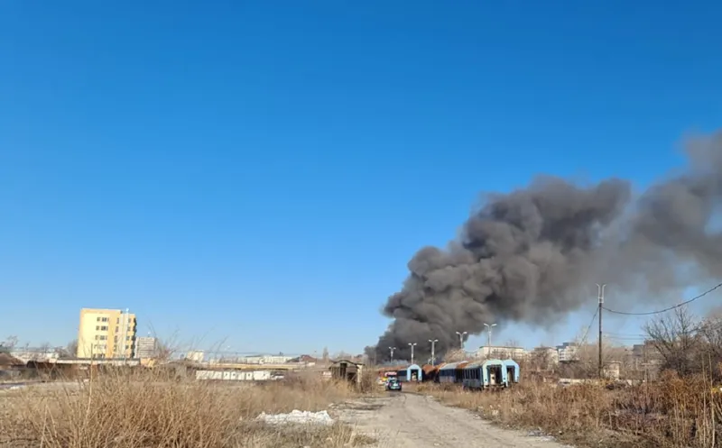 Incendiu pe calea ferată în București. Ard vagoane dezafectate în apropiere de gara Basarab