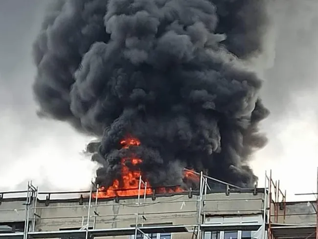 Incendiu puternic cu degajări mari de fum la un bloc de locuințe aflat în renovare din Sectorul 5 al Capitalei. 10 autospeciale de pompieri cu apă și spumă au fost trimise la locul incidentului.