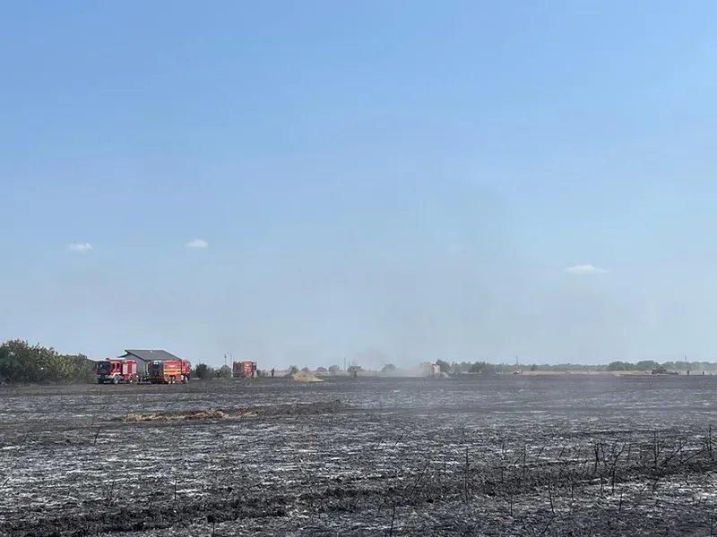 ”Intervenim pentru stingerea unui incendiu de vegetație uscată produse pe N.D. Cocea, sec.5. Incendiul se manifestă pe un camp pe o suprafață mare cu degajări mari de fum. Intervin 15 autospeciale de stingere cu apă și spumă și o ambulanță SMURD.