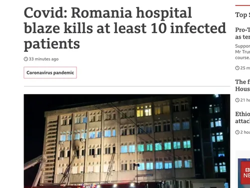Știrea despre incendiul de la Spitalul județean Piatra Neamț a fost preluată rapid de presa internațională. Au scris despre tragicul eveniment BBC, Euronews, Sky News, ABC News.
