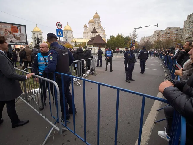 Ca urmare, dispozitivul de ordine a fost reconfigurat, iar accesul enoriașilor a fost redirecționat prin intrarea laterală.