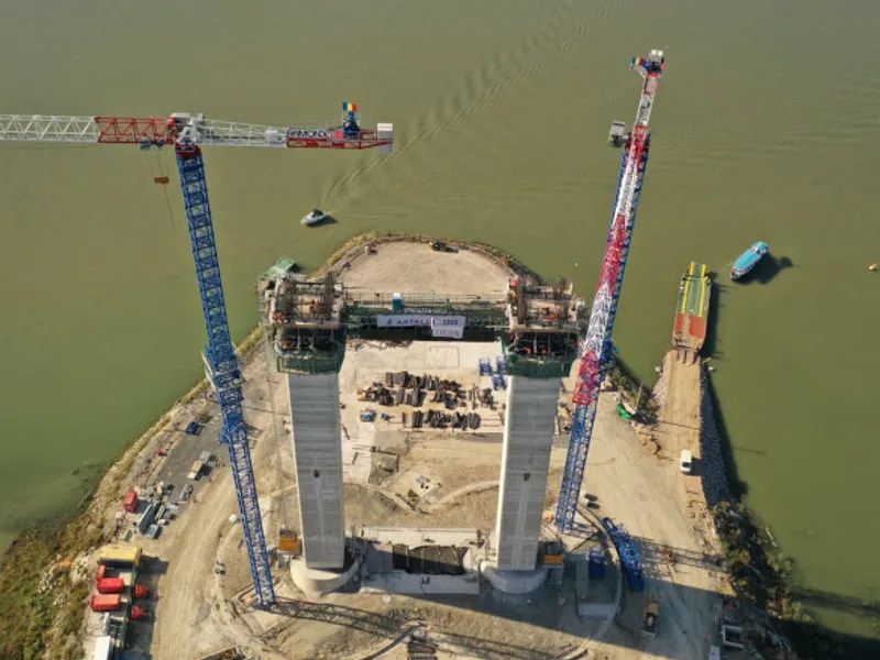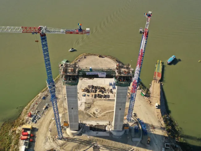 Puțini știu că un pod se construiește altfel decât un drum pe pământ. Lucrările la acest pod, odată începute, nu merg oprite, nu poți lăsa cabluri atârnate doi ani. Se toarnă pilonii, betonarea nu poate fi oprită, altfel sunt buni de aruncat. Se lucrează nonstop la piloni.