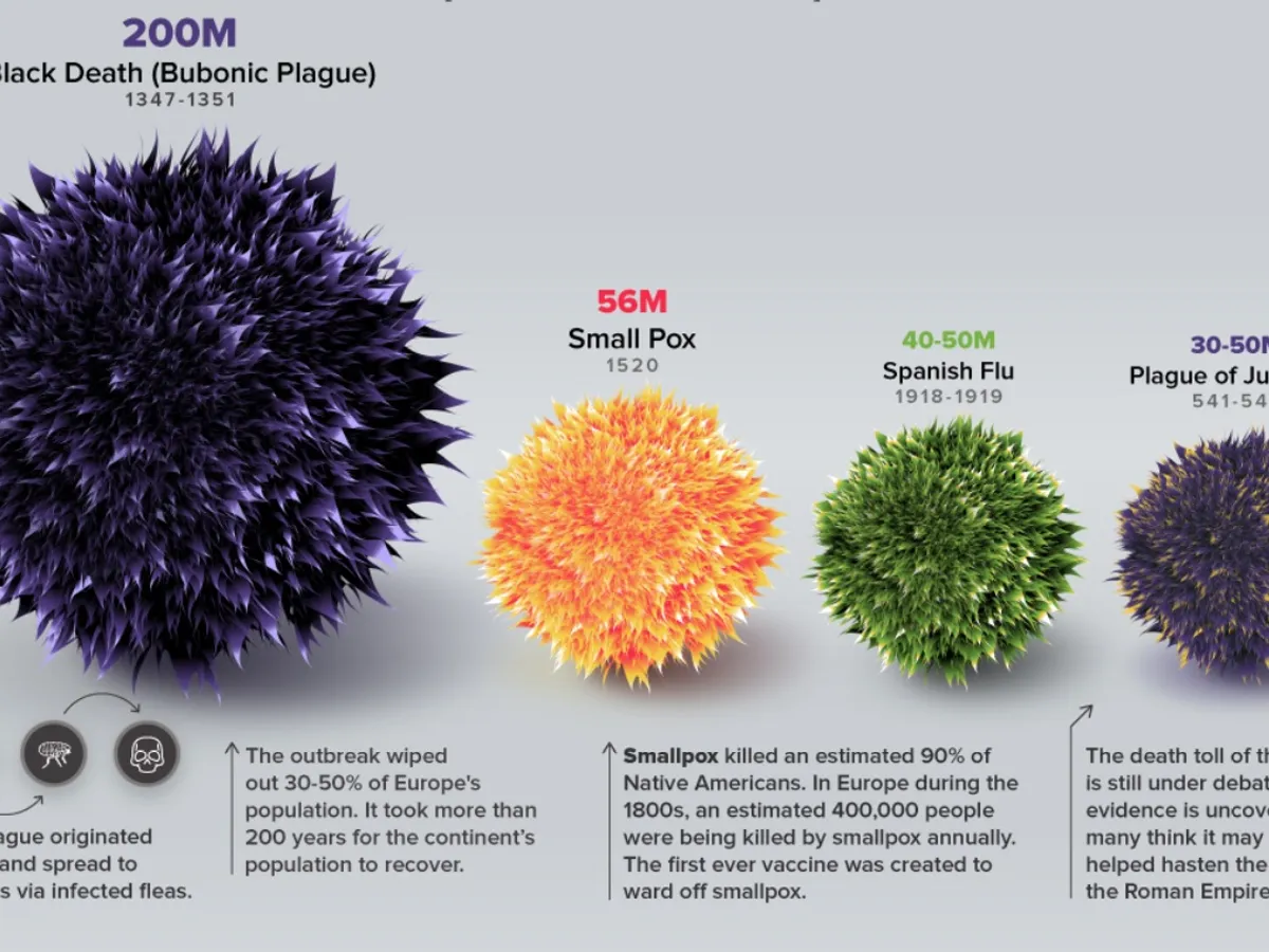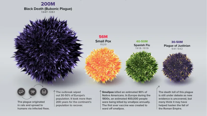 Newsweek România vă prezintă o infografie, publicată de site-ul www.visualcapitalist.com, cu cele mai mortale pandemii din istorie, de la Ciuma Antonină până la COVID-19.