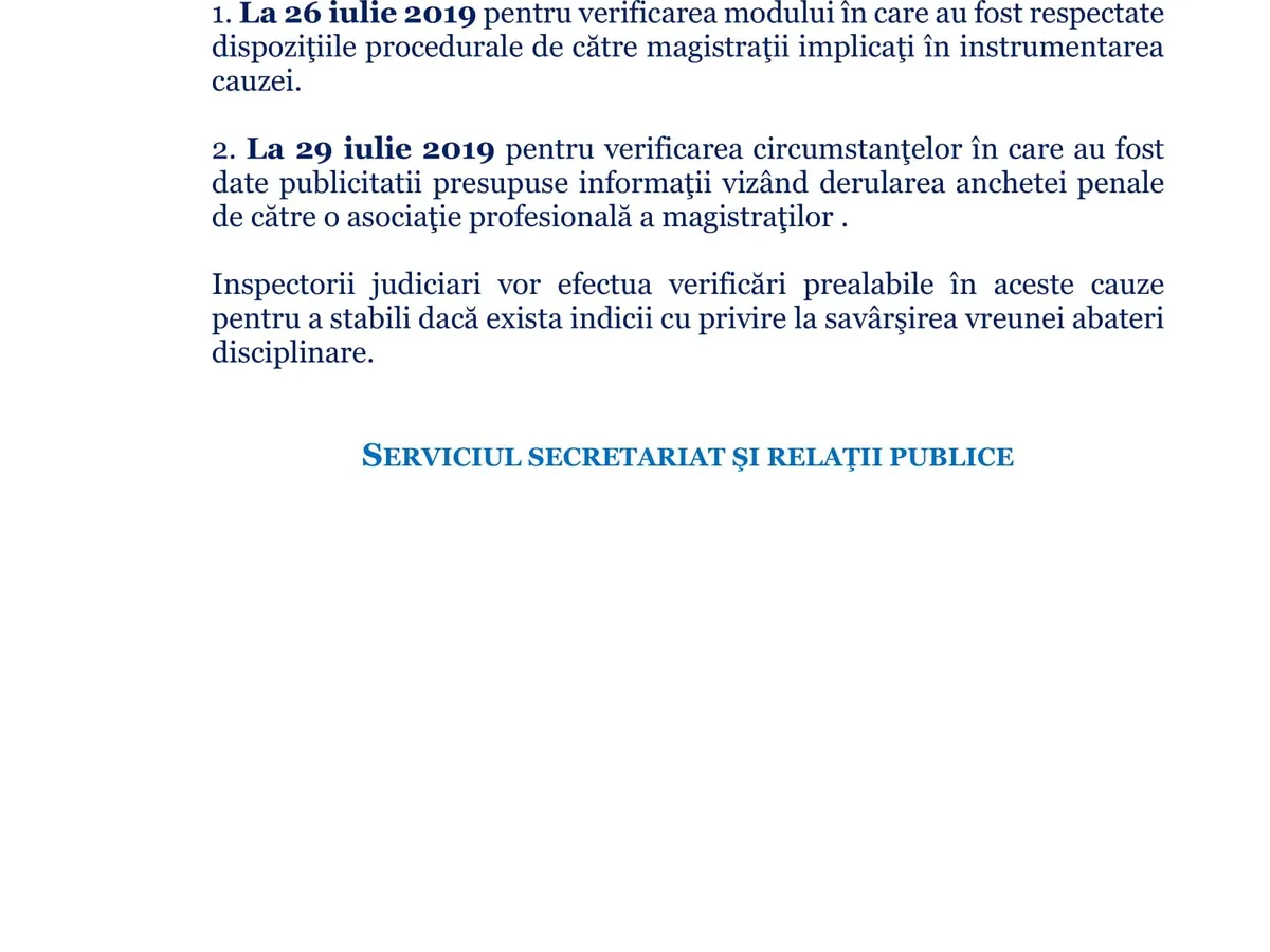 Reprezentanţi ai Inspecţiei Judiciare au declarat că vor verifica situaţia şi vor anunţa în cursul zilei de luni măsurile luate, în contextul apariţiei, în spaţiul public al scrisorii Asociaţiei pentru Apărarea Statutului Procurorilor (AMASP).
