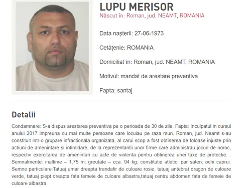 În luna martie a acestui an, Poliţia Română l-a dat în urmărire naţională pe Merişor Lupu, un individ în vârstă de 48 de ani, pe numele căruia Tribunalul Neamţ a emis un mandat de arestare în lipsă.