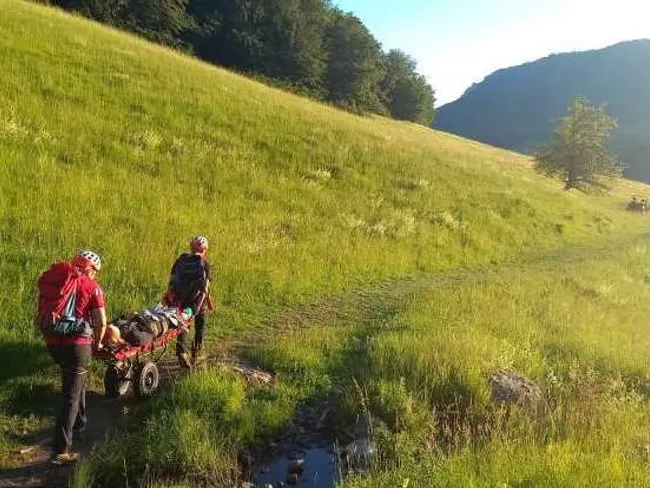 "Aceasta parcurgea traseul cu marcaj turistic 'Punct Roşu', când a suferit un accident la un picior, urmat de o inflamaţie însemnată care o împiedică să se mai deplaseze.