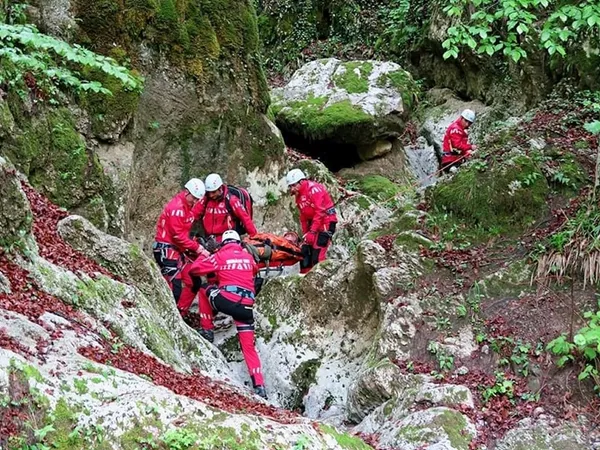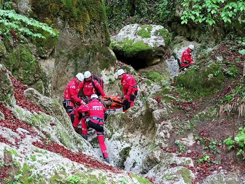 "Acţiune în derulare a salvamontiştilor din cadrul serviciului Salvamont al Consiliului Judeţean Neamţ pentru acordarea primului ajutor unei persoane cu criză cardiacă gravă, cu pierderea stării de conştienţă, în zona La Morminte din masivul Ceahlău.