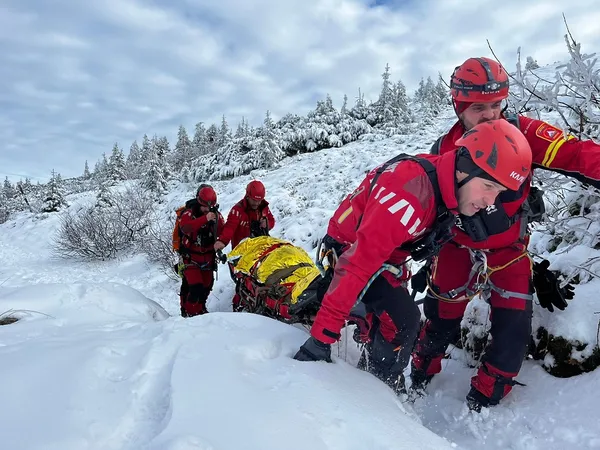 „Din cauza condiţiilor meteorologice nefavorabile, preluarea victimei cu elicopterul nu este posibilă în acest moment. În aceste condiţii, o parte dintre salvatori au preluat ceilalţi doi membri ai grupului, pe care îi coboară în siguranţă, în timp ce restul echipei a Serviciului Judeţean Salvamont Braşov continuă transportul terestru al victimei către baza muntelui, pentru a fi predată cât mai rapid unui echipaj medical specializat”, au mai transmis salvamontiştii.