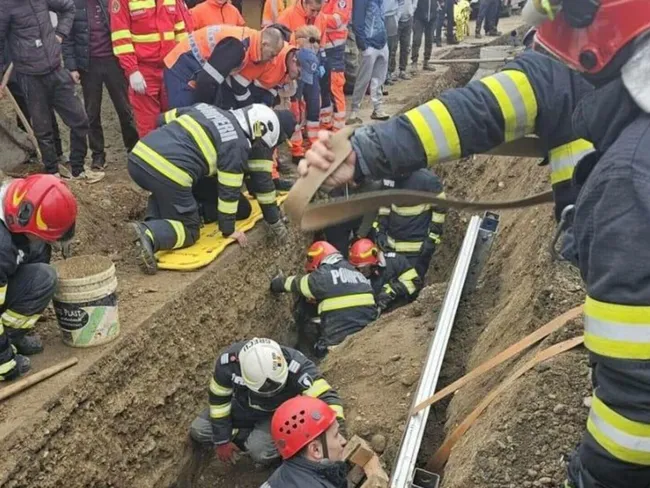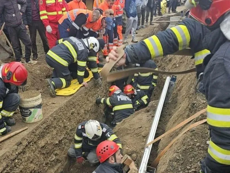 Intervenție de urgență pentru pompieri după ce doi muncitori au fost prinși sub un mal de pământ. Ce a urmat și care este starea victimelor?