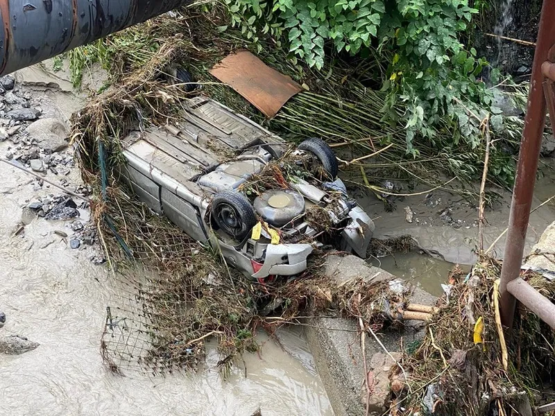 Inundaţii pe Valea Prahovei: la Sinaia, un autoturism a fost luat de viitură