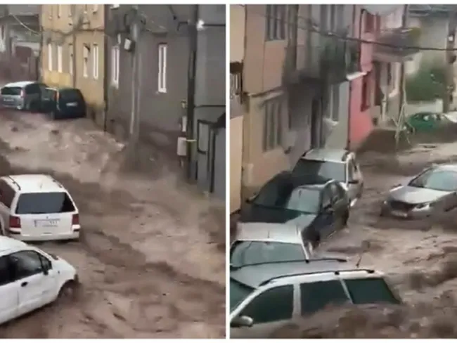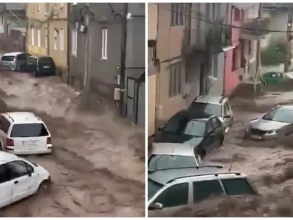 Inundații puternice la Reșița, după o ploaie torențială. Oamenii s-au baricadat în case, iar mai multe mașini au fost luate de ape.