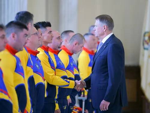 „Veţi reprezenta şi de această dată România cu mândrie şi onoare şi sunt convins că motto-ul dumneavoastră - Nu linia de sosire contează, ci linia de start - va întări spiritul de camaraderie care vă defineşte. Vă înmânez drapelul tricolor, pe care l-aţi onorat cu cinste, onoare şi demnitate de fiecare dată, şi vă urez multă sănătate şi mult, mult succes la competiţia de la Haga!”, a conchis Preşedintele României.