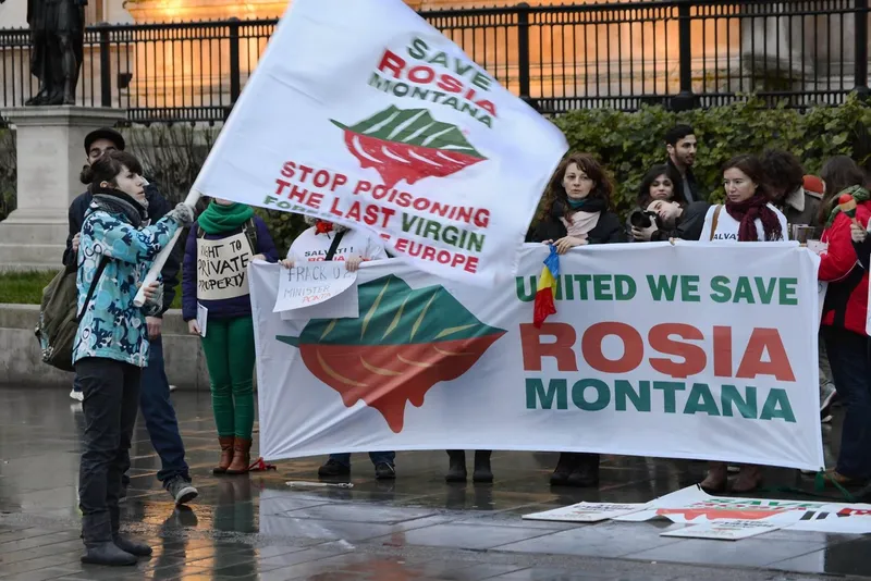 În decembrie 2013, sub presiunea publică, proiectul privind Legea minelor a picat în Parlament. În iulie 2015, a început litigul de la Centrul Internațional pentru Soluționarea Litigiilor privind Investițiile (ICSID), în temeiul tratatelor bilaterate de investiții Canada-România și Marea Britanie-România.