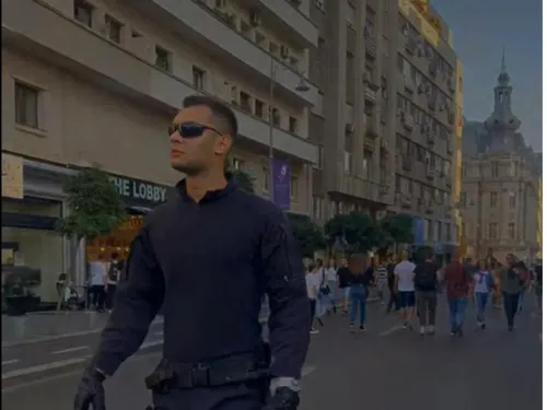 Având ca fundal sonor melodia Gimme! Gimme! Gimme! (A Man After Midnight) a trupei ABBA, jandarmul se plimbă pe Calea Victoriei şi prin Centrul Vechi, conform news.ro