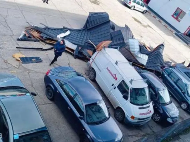 Acoperişul clădirii Inspectoratului de Jandarmi Judeţean (IJJ) Suceava a fost smuls din cauza vântului puternic, fiind avariate şi opt autoturisme parcate în apropiere, a informat, marţi, purtătorul de cuvânt al instituţiei, Roxana Botezatu.