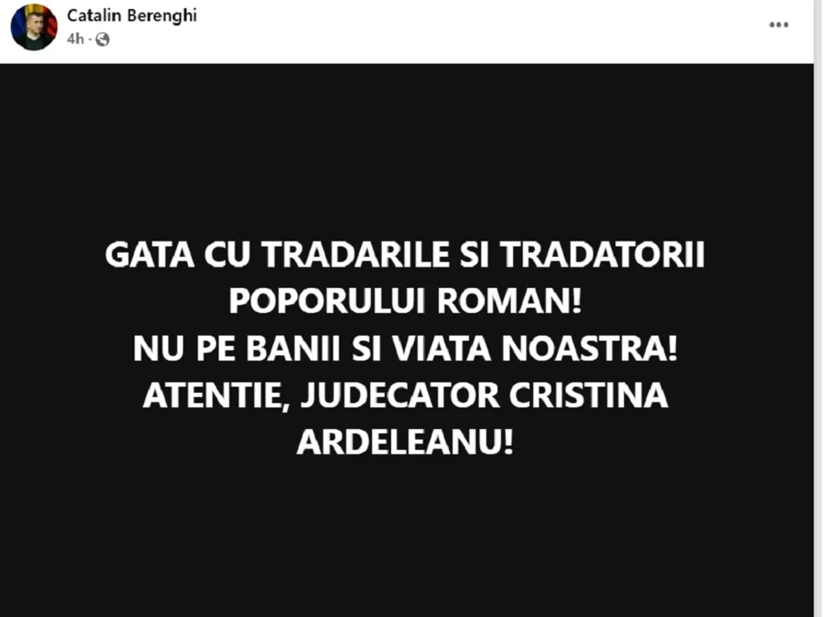 Judecătoarea Cristina Ardeleanu, cea care judecă o contestație dosarul lui Călin Georgescu, a fost amenințată pe Facebook de Cătălin Berenghi, ex - legionar și unul dintre organizatorii protestelor anti vaccin din București în timpul pandemiei de covid.