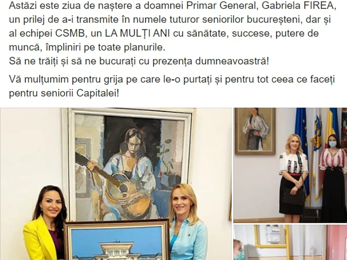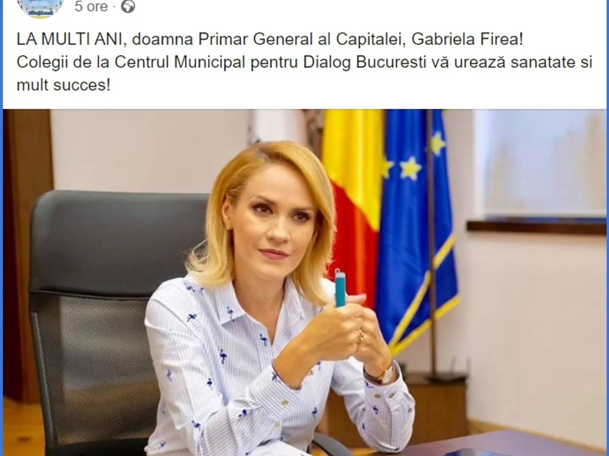 Mai multe companii municipale înființate de primărița Gabriela Firea s-au grăbit să îi scrie ode pe Facebook, de ziua ei.