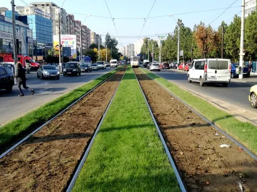 „S-a luat decizia îndepărtării gazonului pentru a putea scădea înălţimea la care este acesta pus. Nu e de vină nici proiectantul, nici executantul, pentru că totul a fost făcut corect şi executat corect. De vină sunt şinele de tramvai care sunt curbate, au valuri, iar tramvaiele când trec peste aceste denivelări ale şinelor, fac balans', explică reprezentantul uneia dintre companiile care execută această lucrare.