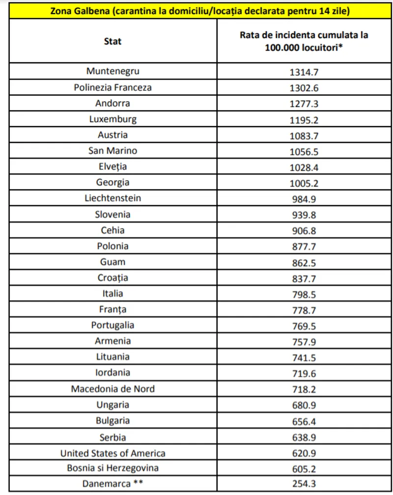 Pe de altă parte, de pe lista țărilor din „zona galbenă” au fost scoase Belgia, Spania, Slovacia, Monaco.