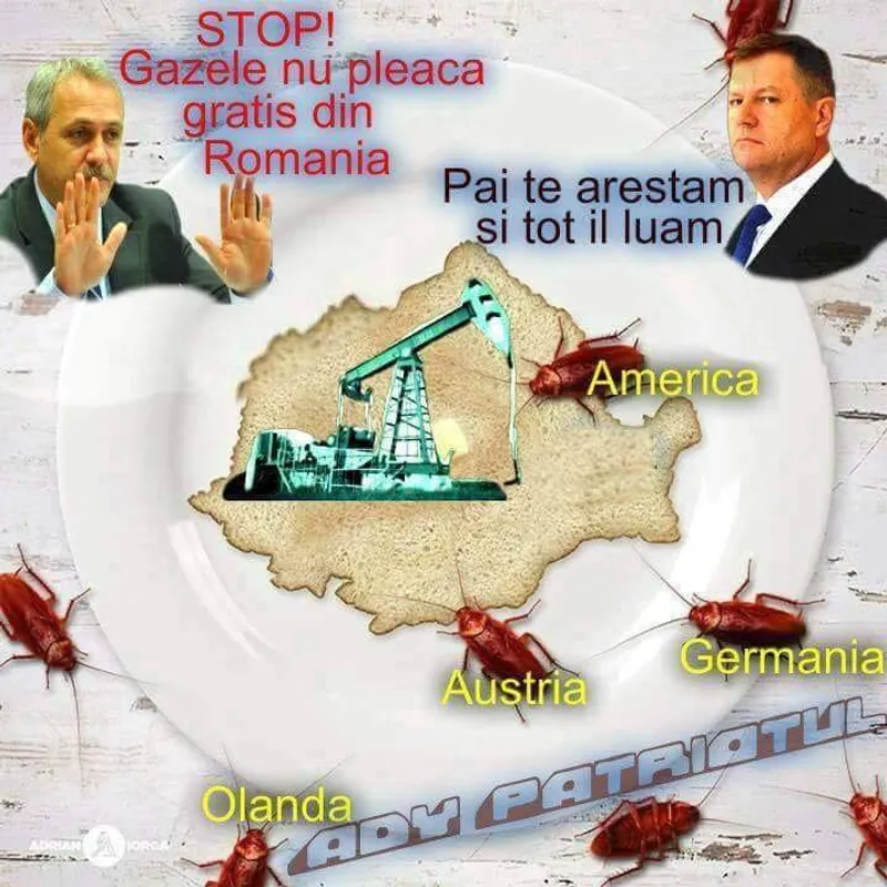 Mesajul pus pe Facebook de senatorul PSD este legat de exploatarea gazelor și presupusele interese strategice ale statelor și îl arată pe Liviu Dragnea spunând ”Stop, gazele nu pleacă gratis din România!”, iar harta României este invadată de gândaci.