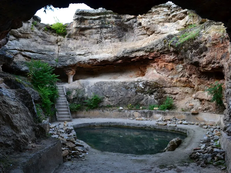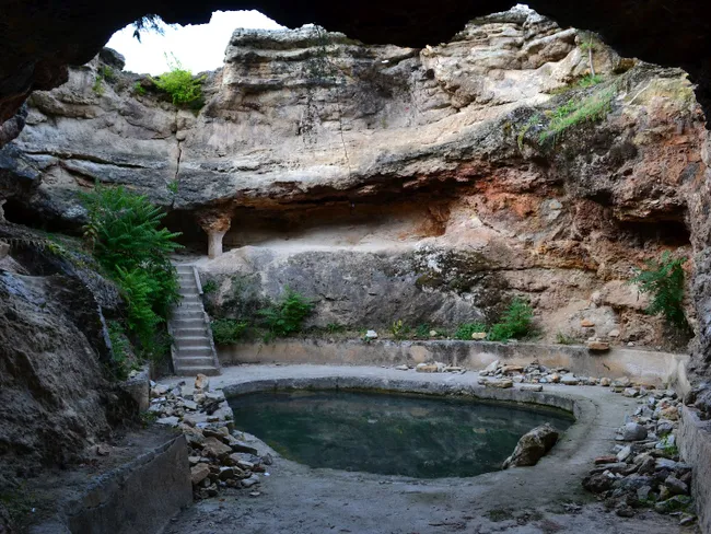 Aici au fost descoperite altarele sau bazele de statui, precum şi statuia de marmură a Dianei. La nivelul bazinului natural au fost săpate în stâncă mai multe camere de baie care comunicau între ele. Întreaga zonă era sacră, iar centrul cultului îl constituia bazinul natural, craterul din care izvora apa.