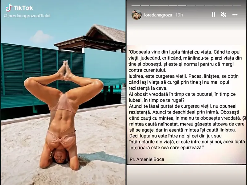 Loredana, postură yoga provocatoare pe TikTok, citate din Arsenie Boca pe Instagram