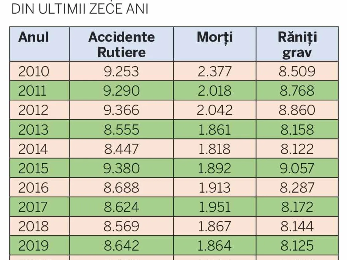 Din ianuarie până în iulie 2021, au fost 2.004 de răniți grav în urma accidentelor rutiere, față de 3.344, în aceeași perioadă din 2020, și 4.200, în 2019. Așadar, față de 2019, numărul răniților grav a scăzut la jumătate.