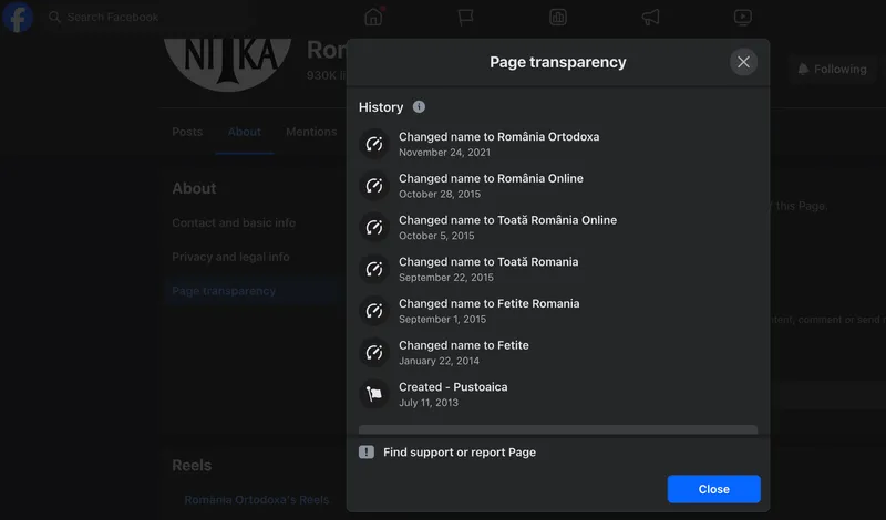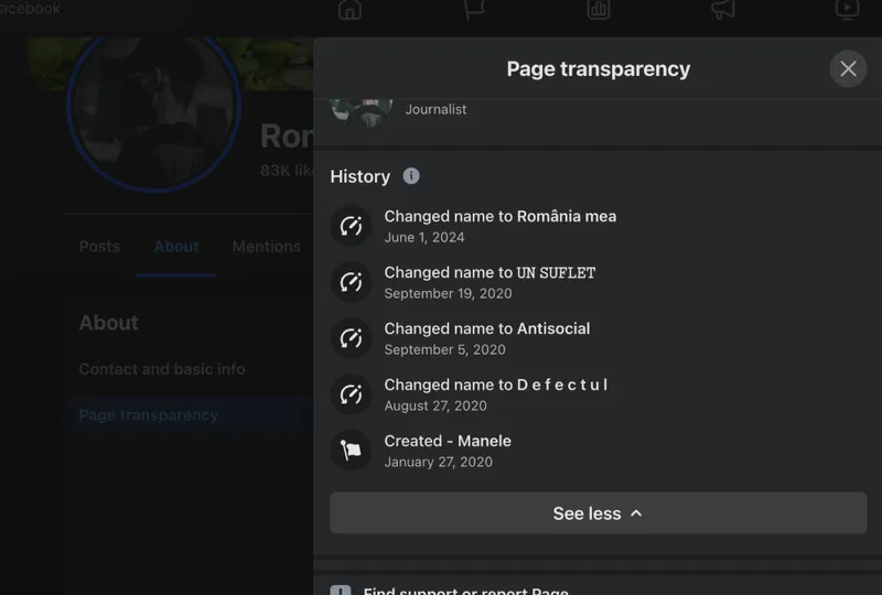 Am inclus și un tutorial prin care oamenii pot verifica istoricul paginilor, astfel încât să evite să cadă ușor în capcana dezinformării sau manipulării", scrie Bobon Razvan Alexandru într-o postare pe Facebook.