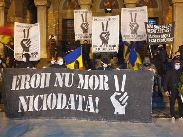 Tinerii au purtat flori, torţe, steaguri tricolore şi steaguri ale Revoluţiei cu vechea stemă decupată și au strigat mesaje precum „Eroii nu mor niciodată”, „Cinste lor, cinste lor, Eroilor” şi „Libertate”.