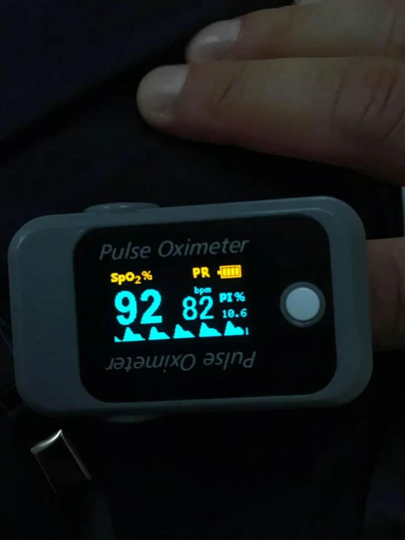 Respiram suficient cât să stau în pat. Dacă mă ridicam în picioare deja începeam să gâfâi. Într-o seară am avut un episod mai lung de tuse după care aproape mi-am pierdut cunoștința. Am tușit aproximativ un minut, după care am început să respir mai tare (pentru a compensa ce nu am respirat cât am tușit). Oricât de tare respiram, nu puteam să acopăr ce era necesar. S-a îngustat câmpul vizual, nu mai vedeam decât drept în fața ochilor, iar restul era negru. Tâmplele mă furnicau și, deși respiram cât de tare puteam, devenea din ce în ce mai rău. După 4-5 minute am început să respir un pic mai normal.