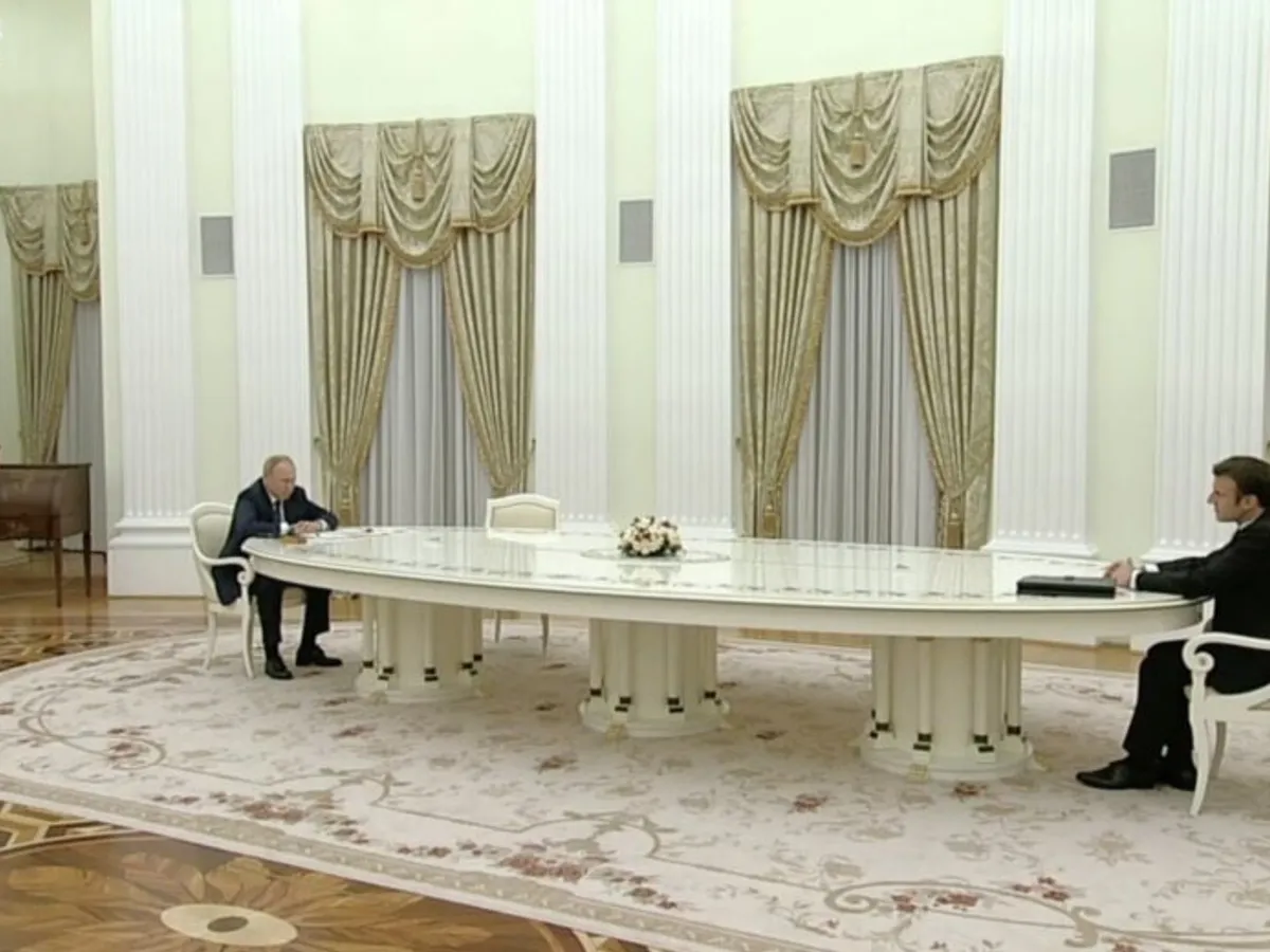 În timp ce discuțiile privind criza ucraineană se prelungesc, internauții nu pot trece cu vederea decorul impresionant din punct de vedere vizual al președintelui rus Vladimir Putin pentru întâlnirea de la Kremlin cu președintele francez Emmanuel Macron: o imensă masă albă.