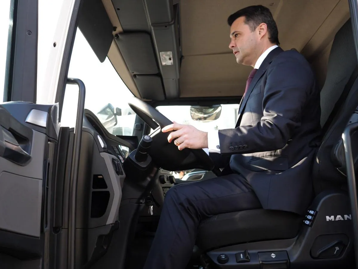 Prima poză care ilustrează știrea privind înființarea companiei de salubritate este chiar cu primarul Daniel Florea la volanul unui camion de gunoi (foto sus, deschidere).