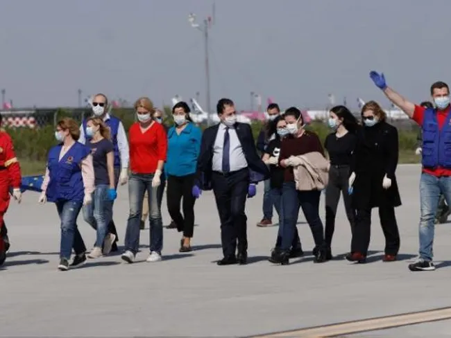 O aeronavă a forțelor aeriene de tip C-27J Spartan a aterizat la ora 16.00 la Baza Militară Optonei, readucându-i în țară pe medicii români care au fost în Italia să-i sprijine pe colegii lor, aducând și aparatura medicală și echipamentele de protecție donate de Papa Francisc.