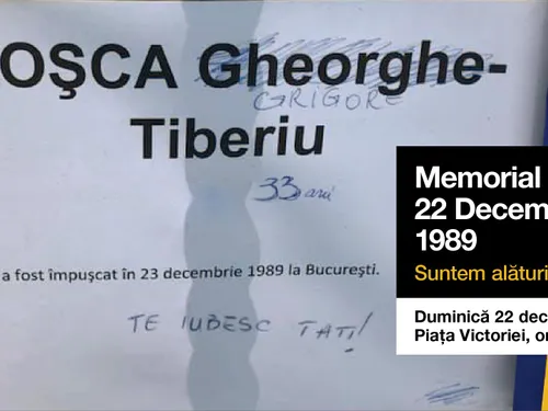 Mai multe asociații civice organizează în data de 22 decembrie, în Piața Victoriei, un memorial pentru cei care și-au pierdut viața în timpul Revoluției din decembrie 1989.