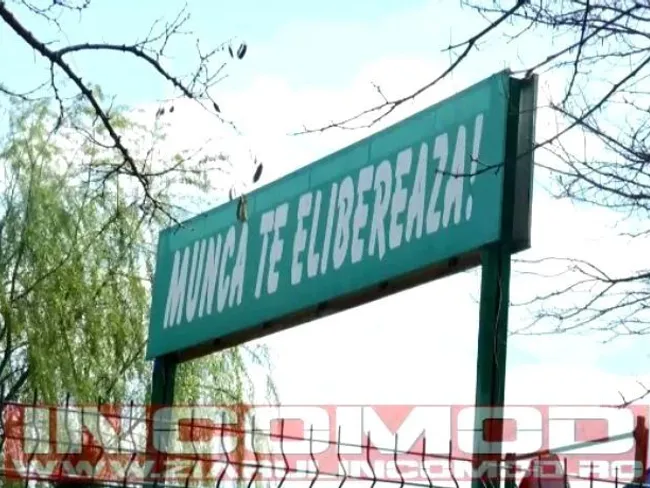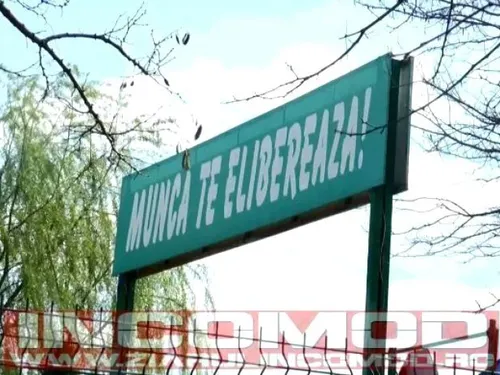 „Munca te eliberează" (Arbeit macht frei), mesajul afișat la intrarea lagărului de concentrare Auschwitz din Polonia, a fost reprodusă pe poarta de intrare unei societăți de stat din județul Prahova, potrivit publicației Incomod.