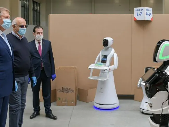 Roboțeii asistent de la Unitatea de Suport Medical Bucureștii Noi, deschisă pentru pacienții de Covid în București, cu fonduri strânse de firme și ONG-uri, vor ghida pacienții în spital, vor servi mâncarea și vor avea și alte sarcini ne-medicale.