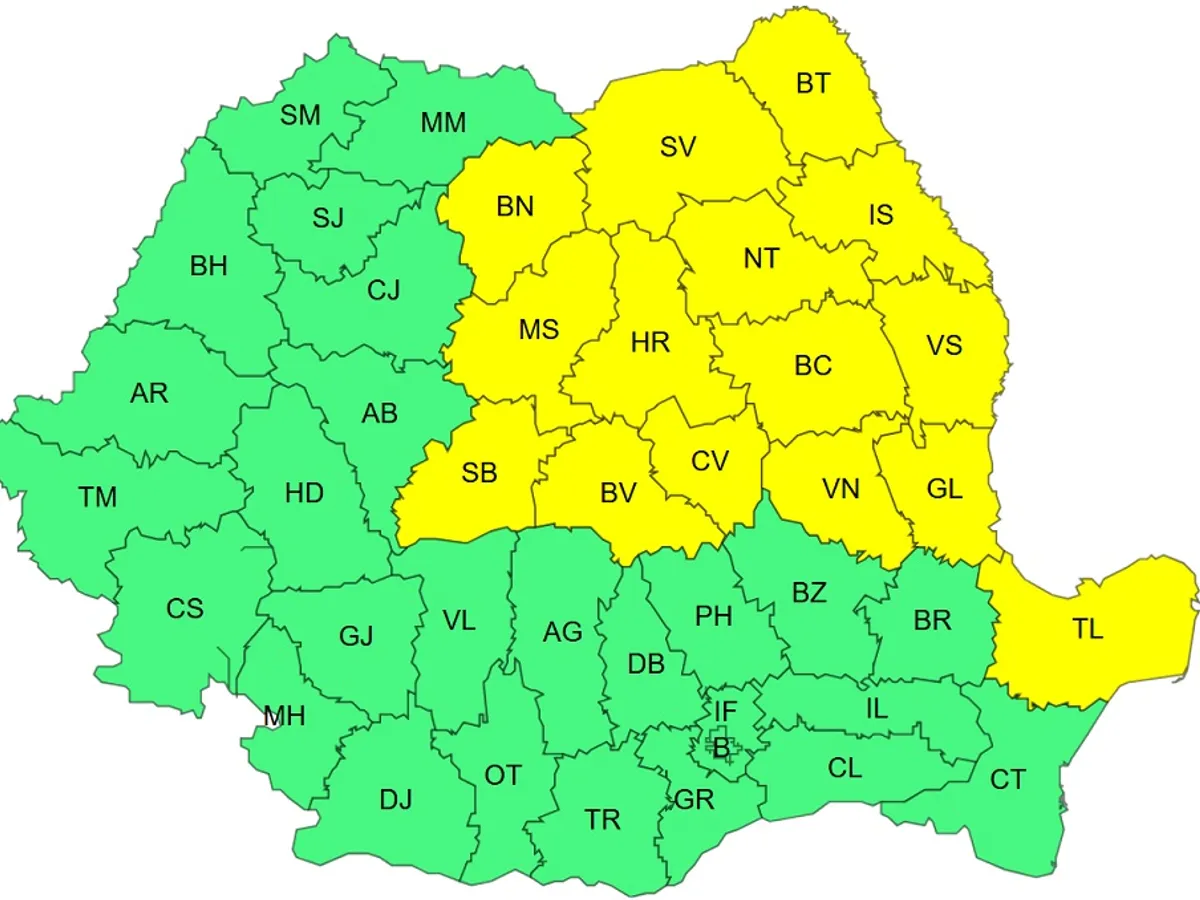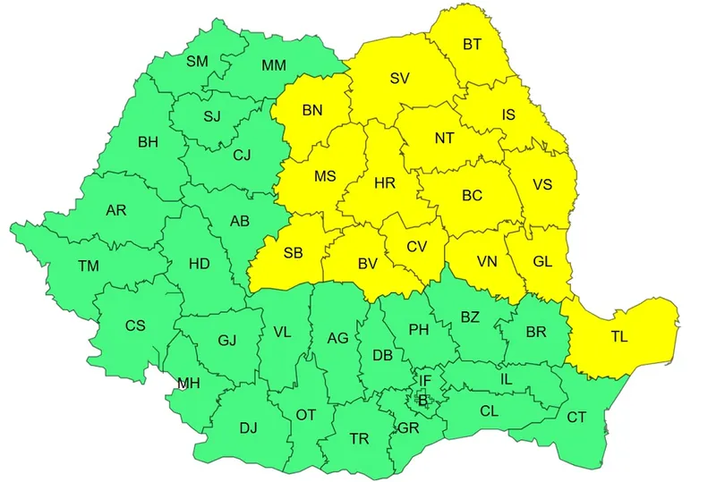 Atenţionarea cod galben este valabilă pentru intervalul 24 august, ora 10 – 24 august, ora 20