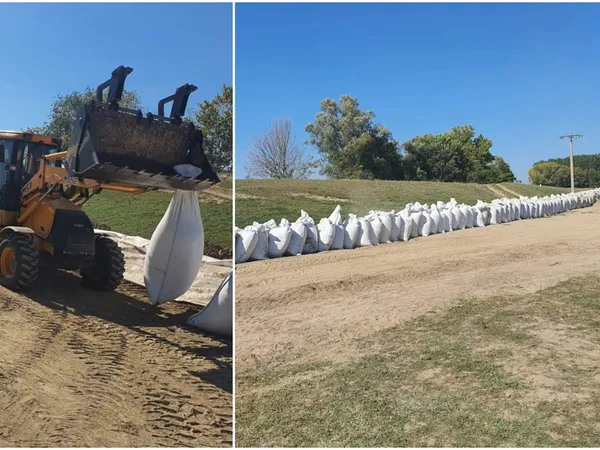 Pe o lungime de 350 metri, în zona Baital, pe brațul Borcea, pe malul drept al Dunării, vor fi montați în aceste zile peste 400 de saci.